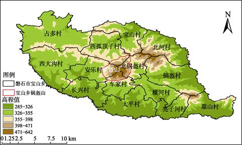 图2 磐石市宝山乡海拔高度分类图