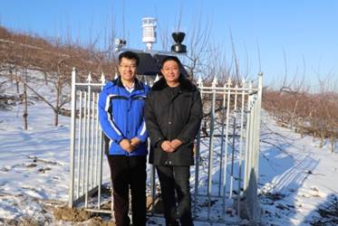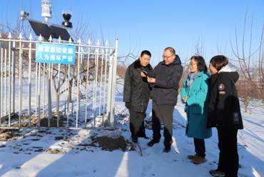 为了更好的对果树生长环境及过程进行追溯,2021年11月磐石市宝山乡政府在锦绣海棠果园安装了全自动生态定位观测站,该观测站由北京天航华创科技股份有限公司研制,经深圳天溯计量检测股份有限公司质量校准检验达标的低功耗物联网感知设备组成(图4- 6)。磐石市宝山乡锦绣海棠果园生态环境监测站功能包含气象、空气、土壤、水质、植被、物候、病虫害等生态环境要素的自动获取、自动识别和自动传输。宝山乡对该观测站的设备保护、运行责任落实到人(图7)。同时,利用无人机多光谱相机对锦绣海棠种植区进行航拍,该影像能直观清晰的展示宝山乡锅盔山锦绣海棠种植区域(图8、图9)。这些观测数据与传统观测站长期平均数据(图10、图11)融合分析,可以更好地判断当年天气异常情况,辅助果园管理决策。