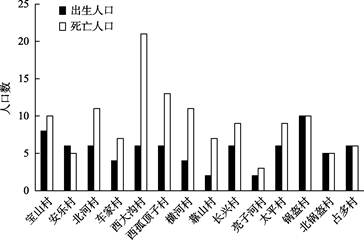 图21 宝山乡2021年出生与死亡人口统计对比图 |
