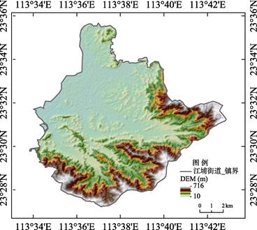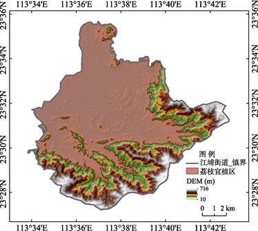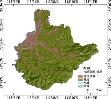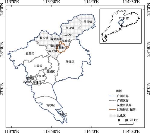 案例区从化江埔街道位于广州中部中粤地区从化区东部(图2),东经113º17′至114º04′,北纬23º22′至23º56′之间。面积为131 km2。